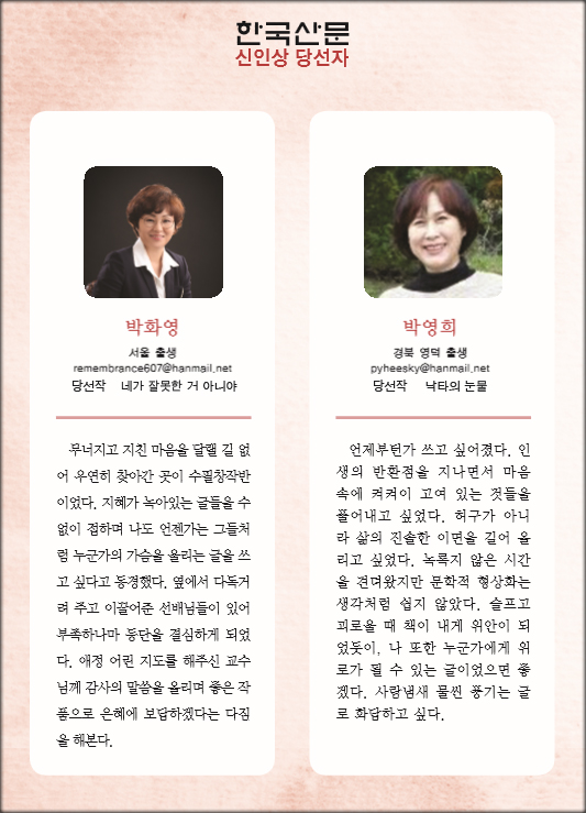 박영희 두 분 선생님 등단을 축하드립니다.