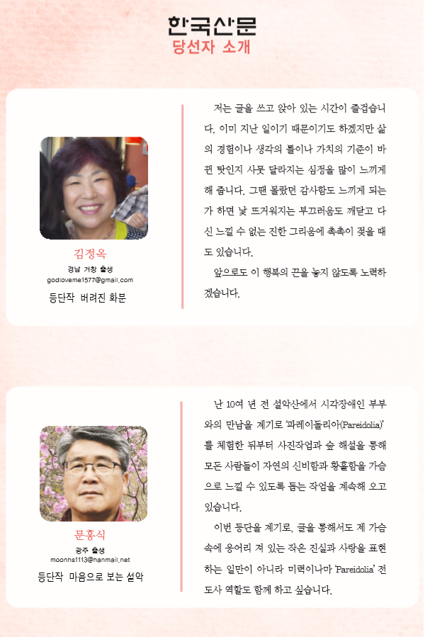 김정옥 선생님! 등단을 축하드립니다^^
