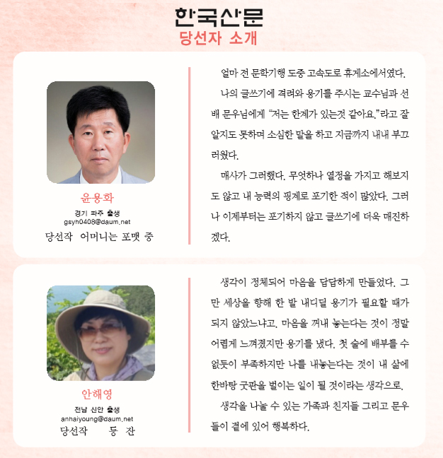윤용화 선생님 등단 동기 되어 반갑습니다.