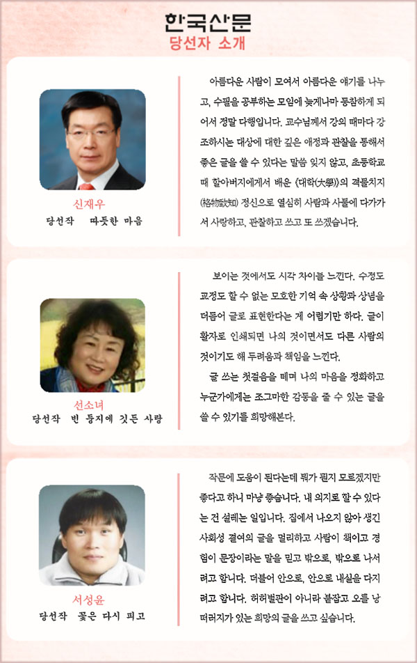 세 분의 등단을 진심으로 축하드립니다.