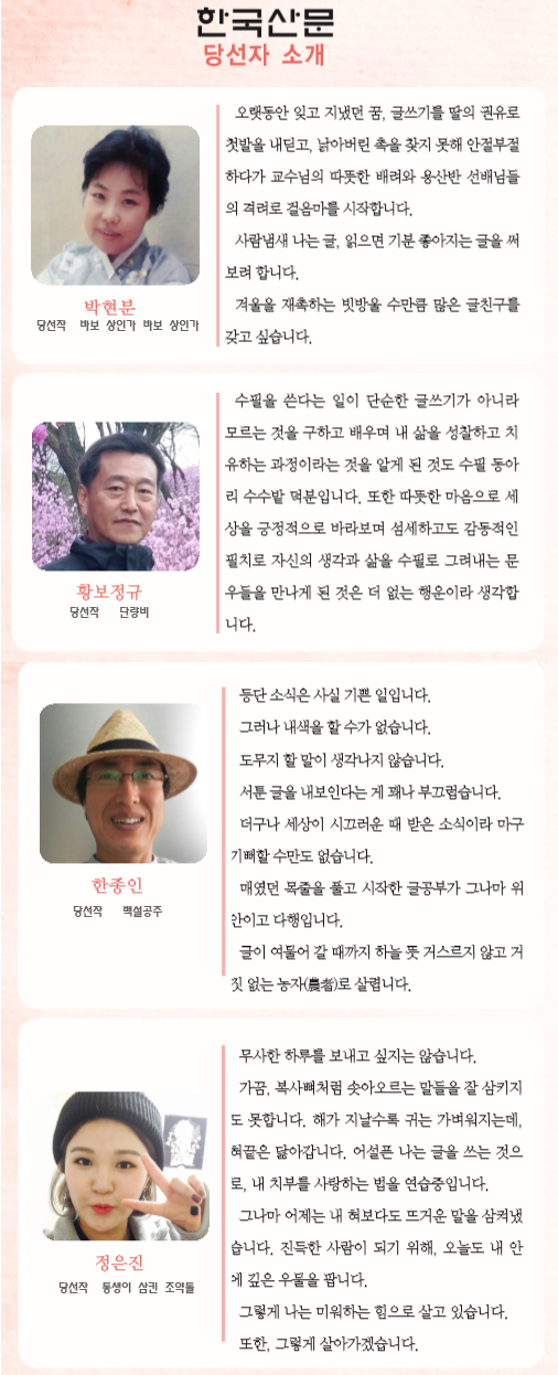박현분 선생님~ 등단글에서 감동받았습니다.
