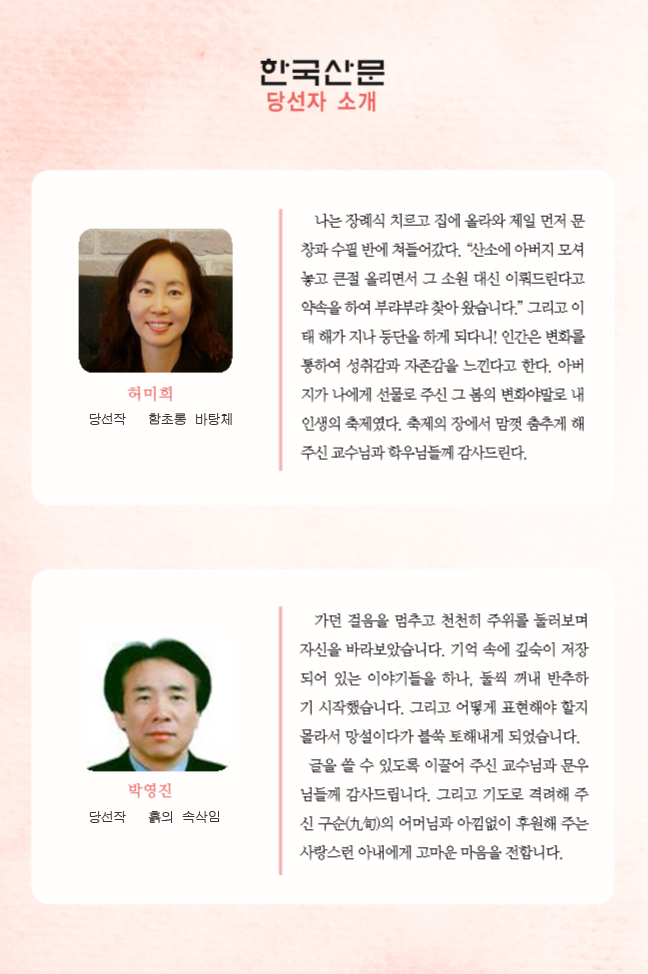 앞으로 허미희선생님이 펼쳐나갈 문학의 향연이 벌써 기대됩니다.