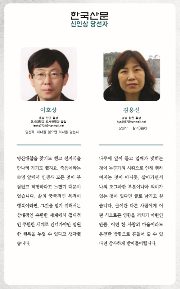 이호상선생님 김용선선생님 등단을 진심으로 축하드립니다.