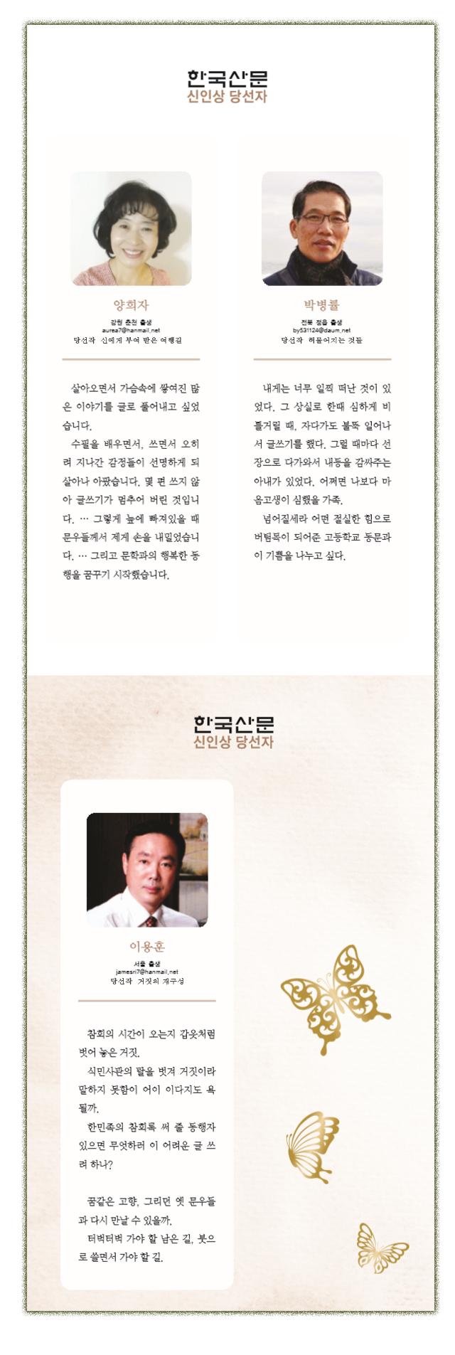 세 분 선생님의 등단을 진심으로 축하드립니다.