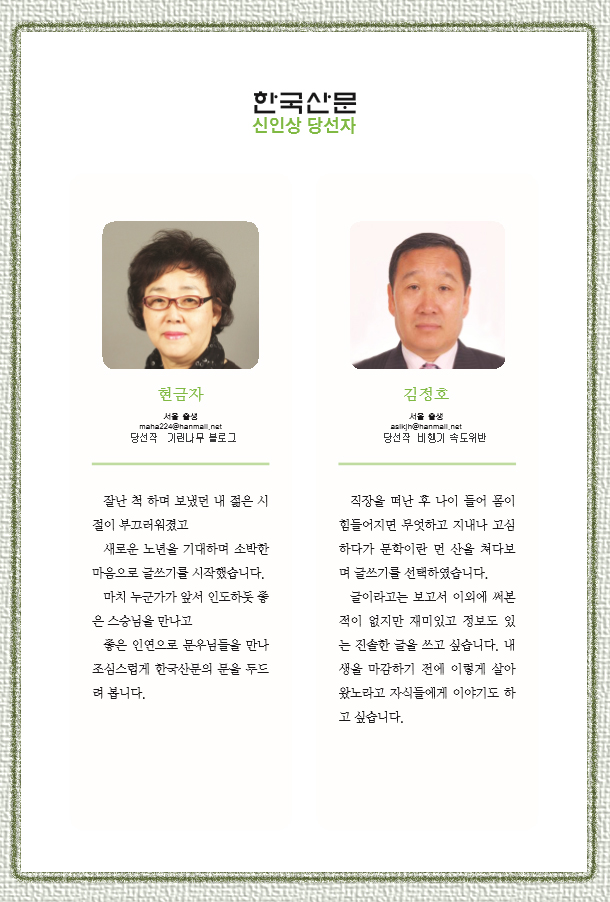 김정호 선생님~ 춘삼월에 등단하심을 축하드립니다^^