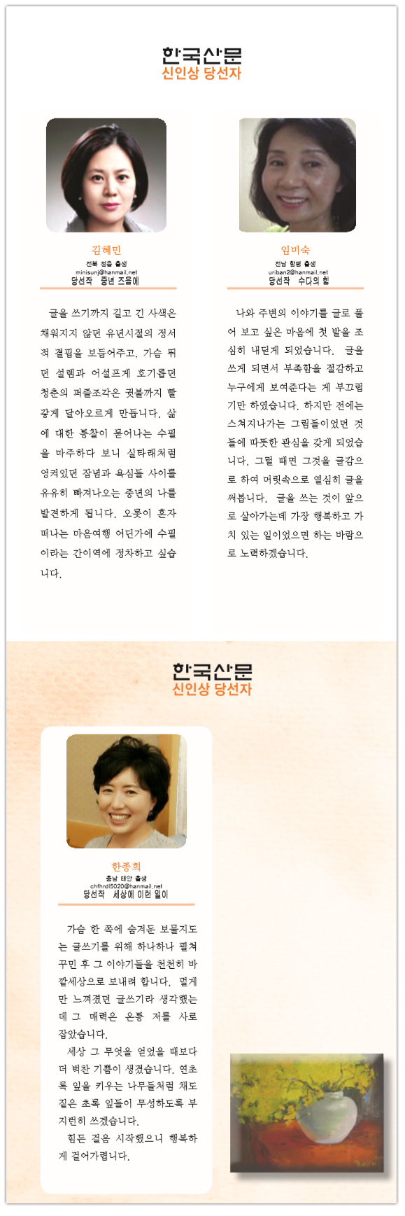김혜민선생님~ 등단을 축하드립니다.
