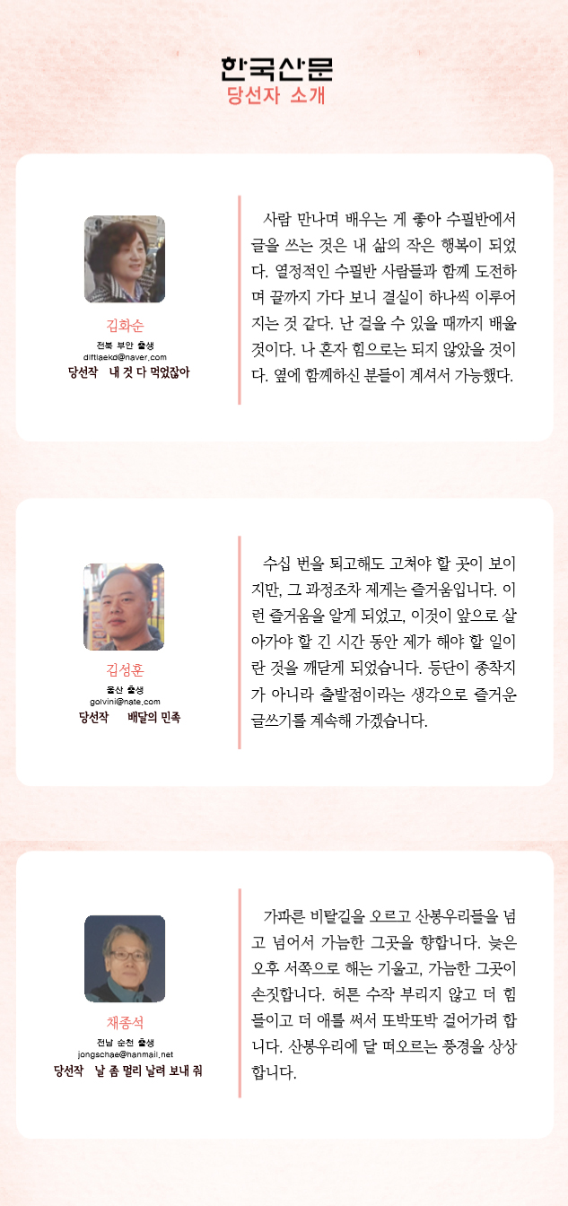 3월 등단을 축하합니다_김성훈 님, 김화순 님, 채종석 님