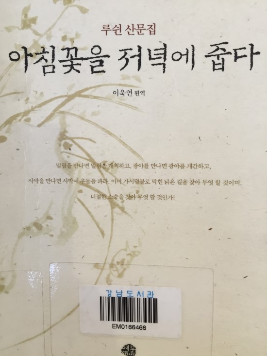 (그림) 루쉰 산문집<<아침 꽃을 저녁에 줍다>>표지
