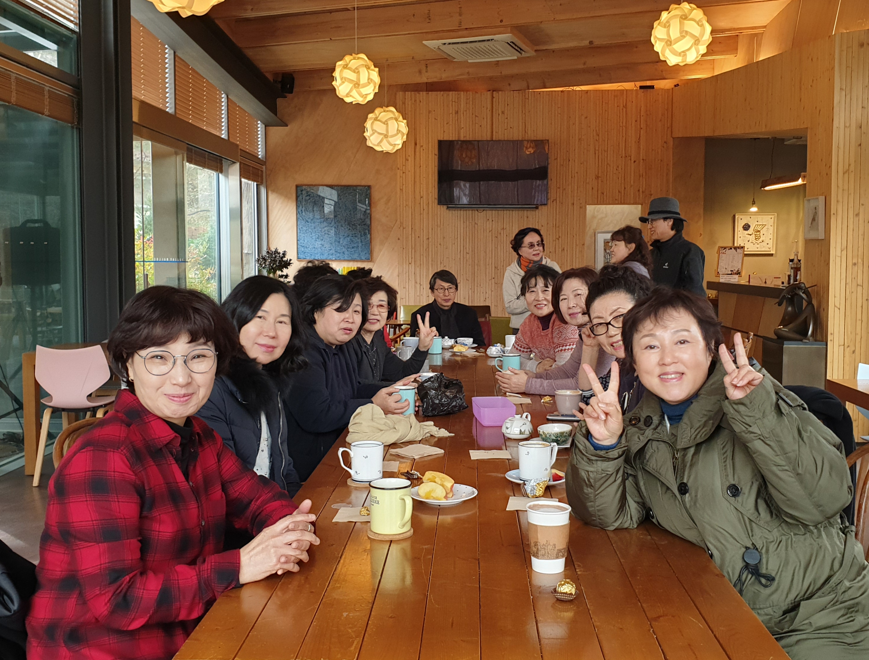 만추 !낭만이 활활 탑니다 천호반, 판교반 함께 추억을 엮어 곤지암에서 목요일을 보냈습니다 김인숙 선생님께서 목요일, 오늘 소회를 보내오셨습니다. ‘통영바다’에서 먹은 점심은 모두들 감탄사를 연발하였답니다. 통영바다를 옮겨 놓은 반찬들과 생선구이는 바다내음이 물씬 나는 식탁이었습니다. 한종인 반장님께서 사주신 점심은 진수성찬에 맛까지 더해지니 감탄이 절로 나오는 행복한 점심이었습니다. 먼 길 달려와 ‘곤지암 밸리’ 카페 ‘베료자’에서 커피 사주신 조선근 선생님- 고맙습니다. ‘bbdiary’에서 달콤 허니 브레드에 맛난 원두 먹도록 금일봉주신 박상률 교수님께도 감사드립니다. 꽉 찬 십일월 셋째 주 목요일이 곤지암 시어골에서 감탄과 온기로 저물고 있었습니다. 함께 해주신 판교반, 천호반 샘들 모두모두 감사합니다.