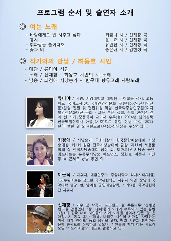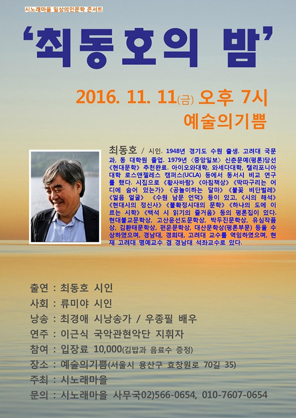 시노래마을 인문학콘서트 '최동호의 밤' 안내