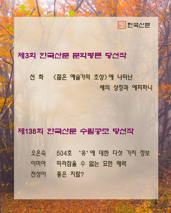 제138회 수필공모/제3회 문학평론 당선작
