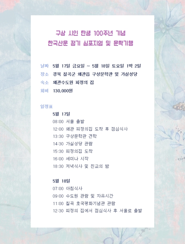 2019 봄 심포지엄 및 문학기행 안내