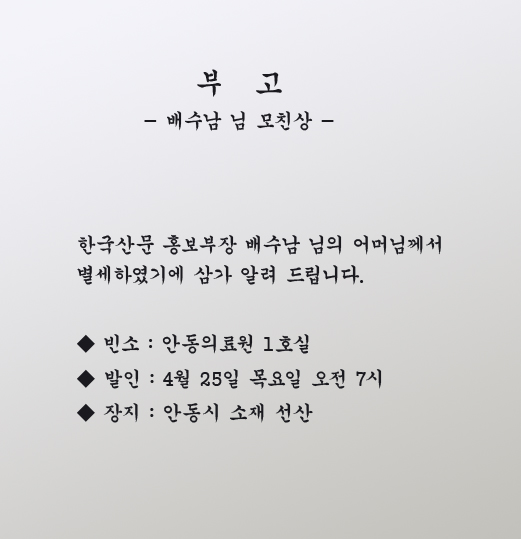 배수남 님 모친상을 알립니다
