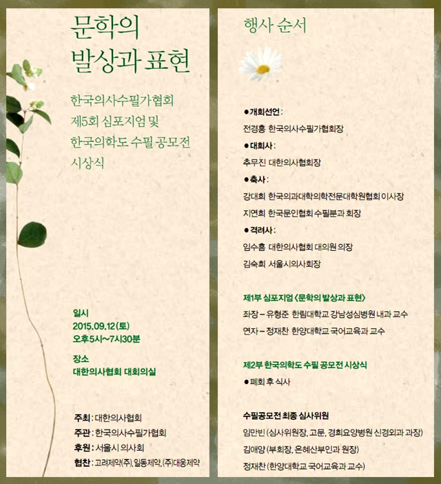 한국의사수필가협회 심포지엄 및 수필 공모전 시상식 안내