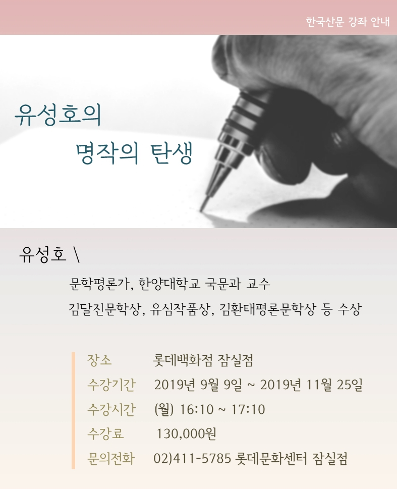 (한국산문 강좌 안내) 유성호의 명작의 탄생