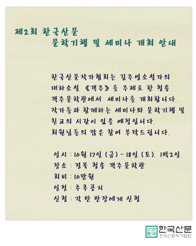 한국산문작가협회 | 문학회가입안내 | 회원작품 | 회원신간소개 | 한국산문앨범