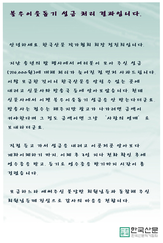 불우이웃 돕기 성금 처리 결과를 알려드립니다.