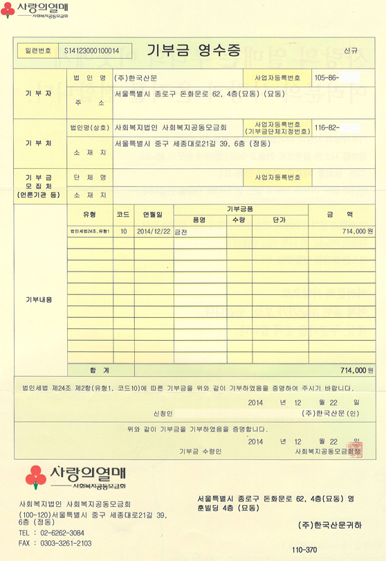 2014 송년의 날 불우이웃 성금 모금 결과.