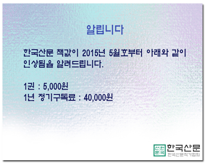 한국산문작가협회 | 문학회가입안내 | 회원작품 | 회원신간소개 | 한국산문앨범