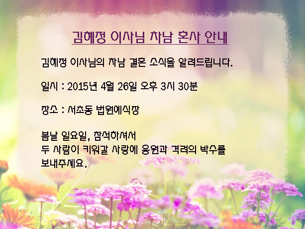 김혜정 이사님(용산반) 차남 혼사 안내입니다.
