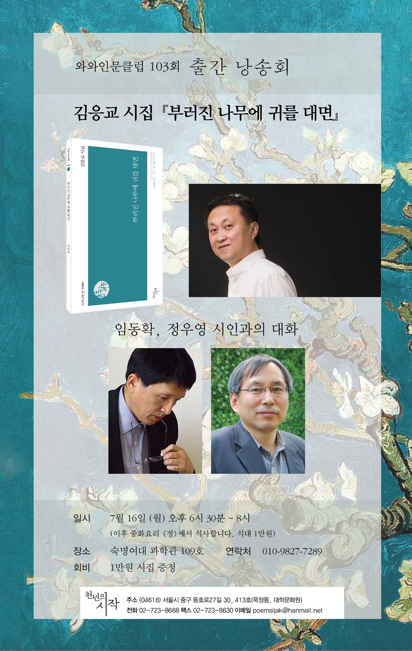 김응교 교수님 시집 『부러진 나무에 귀를 대면』출판기념회 안내