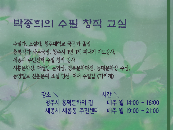 박종희 선생님 수필 강의 안내 (청주시, 세종시)