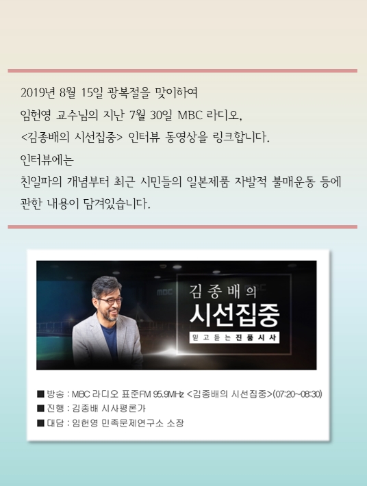 임헌영 교수님 MBC 라디오 인터뷰 동영상