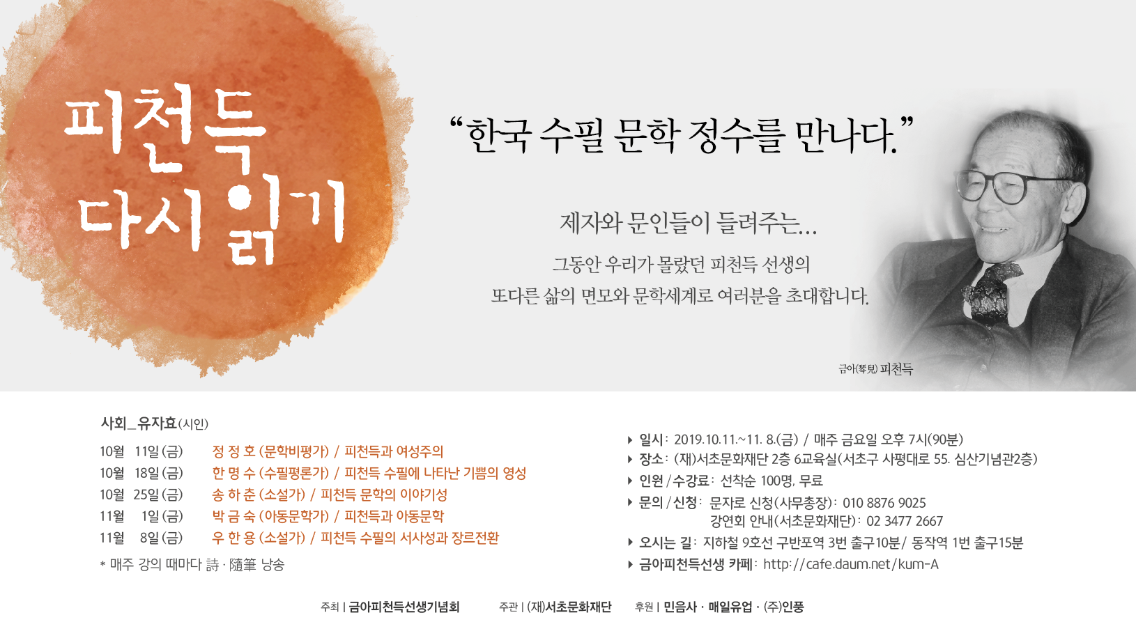 10월 25일 금요일에는 송하춘 교수님의 강연이 있습니다. 회원님들의 많은 참여 부탁드립니다.
