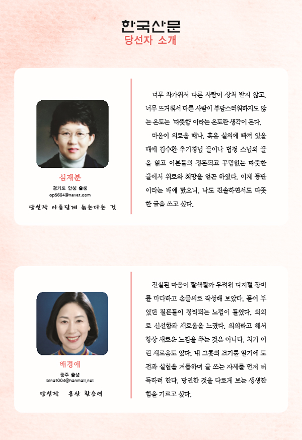 배경애선생님~ 이런 글솜씨로 이제 등단하시다니요~^^
