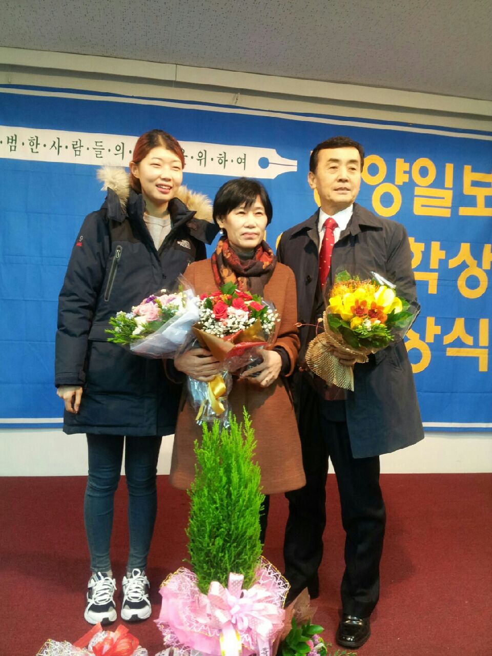 풍성한 꽃다발들과 환한 가족들의 모습에서 그날의 기쁨이 느껴지네요.