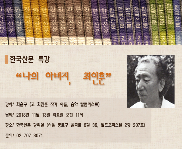 다음 시간엔 최인훈 작가의 아들, 최윤구 님의 특강이 있습니다.