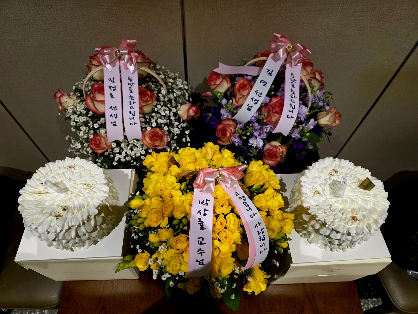 예쁜 꽃바구니와 케잌이 함께 축하의 자리를 빛내주었지요.