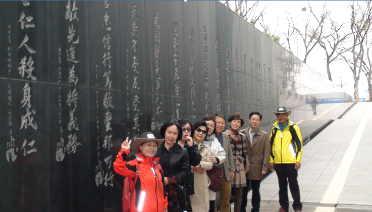 안중근 의사 기념관은 1970년 순국 60주년을 기념하여 남산공원에 세워졌다. 40년이 지나 낡고 규모가 작아 순국 100주년인 2010년 국가의 지원과 국민들의 성금에 의해 재건축하여 최우수 건축상을 받은 기념관이다. 입구에는 안중근 의사께서 여순감옥에서 쓰신 유묵 내용을 오석烏石에 음각으로 새긴 비석 군이 있었다. 문우들은 안중근 의사와 악수를 하려는 듯 단지한 손도장에 자기의 손을 포갠다.