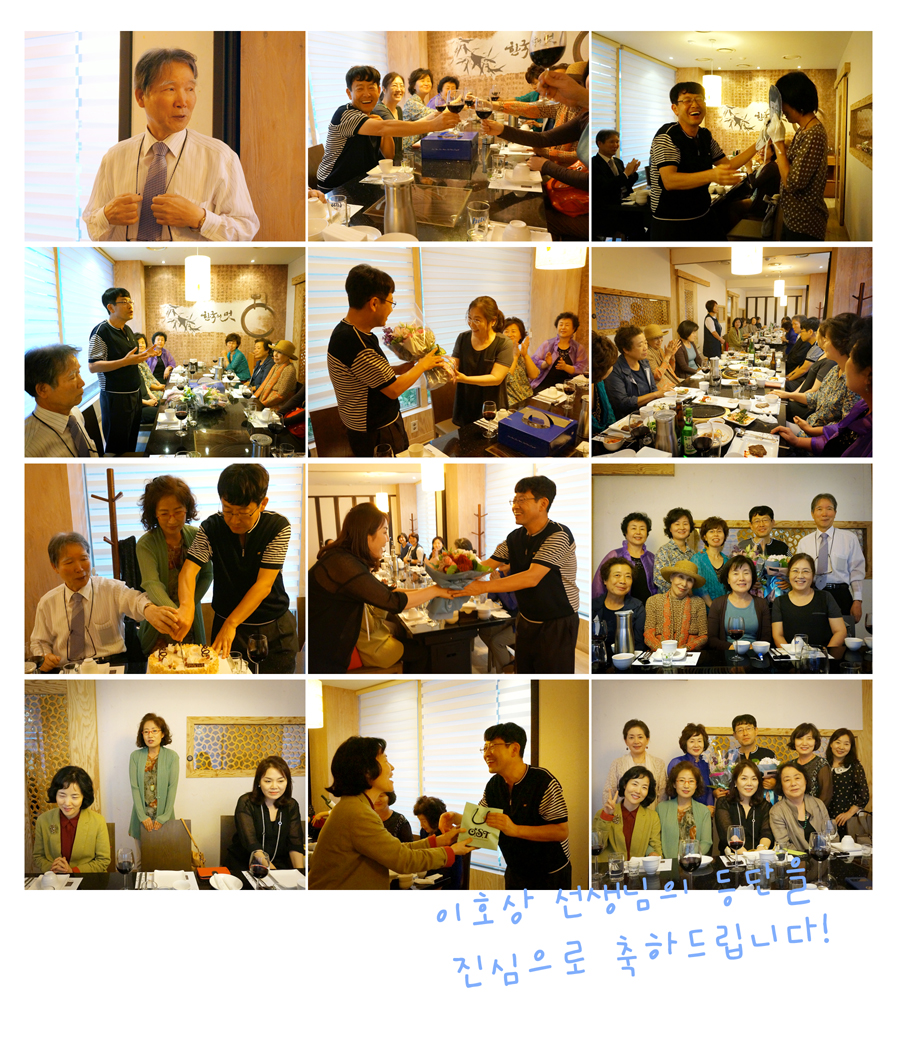 문화센터 옆 한정식집 <기와>에서 오후5시부터 시작하였습니다. 처음으로 저녁때 하는 축하자리라 많이 설레고 기대되었습니다. 분당에서 박서영 반장님과 박재연 총무님이 축하해주시러 오셨습니다. 서영 반장님의 우아한 시낭송, 중국 변검보다 더 재미있는 재연 총무님의 공연은 즐거운 충격이었습니다. 태양이 지배하는 낮의 모임과 달이 떠오르는 저녁 모임은 정말, 확 달랐습니다. 구체적으로 후기를 써야 한다구요? 싫사옵니다. 달밤을 같이 공유한 자들의 즐거움으로, 참석 못하신 분들의 궁금증으로 남기겠습니다.