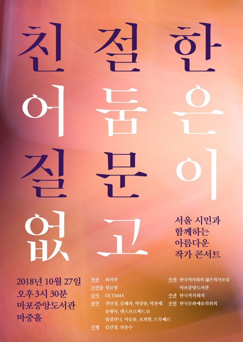 시상식은 10월 27일 토요일 오후 3시 30분, 마포중앙도서관 마중홀에서 실시됩니다.