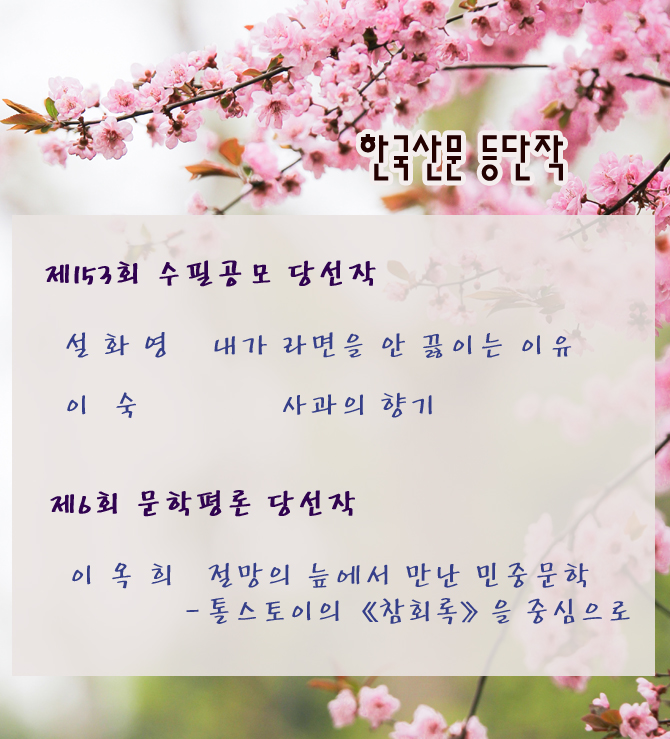 제153회 수필공모/ 제6회 문학평론 당선작